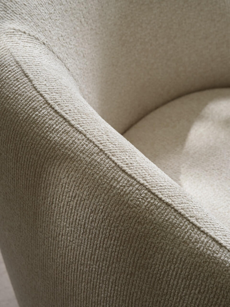 A gorgeous bucket chair with a swivel base, provides really comfortable extra seating for your home. Available in a variety of fabrics and made to order, you can choose from our fabric swatches below. A made to order item.
