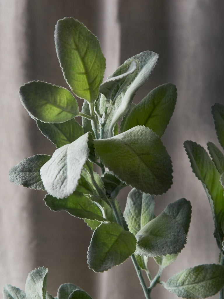 With a lovely velvety leaf, this faux Lamb's Ear stem will add some lovely texture to your display of faux blooms. With a silvery green colour it's a lovely stem for adding in differential tone too.
