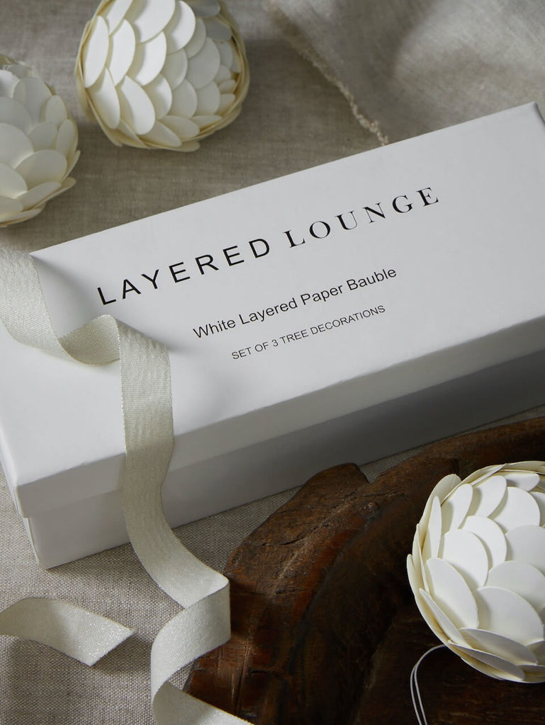 | All Products | 7102933500057 | antique-white-paper-bauble-decorations-set-of-3 | Set of 3 Antique White Paper Bauble Decorations | Christmas, Christmas Room Decorations, Christmas Tree Decorations, Paper Decorations | true | £24.00 | Layered Lounge | Paper Decorations |
