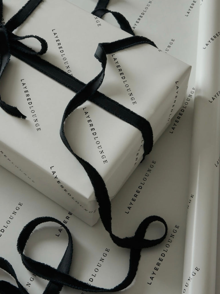 In a variety of sizes, we will take it upon ourselves to select the correct size gift box for your order but please bear in mind that some items will not fit any gift boxes at which point we will then wrap your item with branded Layered Lounge paper and ribbon.