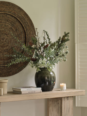 A magnificent bouquet creating all the wintery feels with a beautifully serene tone. Faux Green Eucalyptus combines with Faux Fir Branches, Lambs Ear, Pussy Willow and Thistle creating an abundance of interest and texture in your vase.
