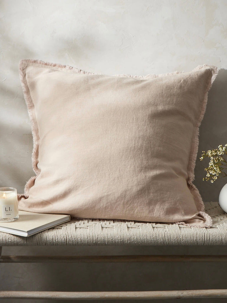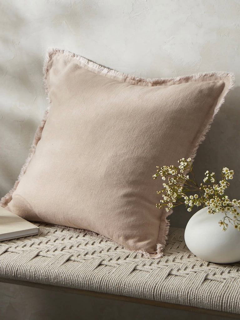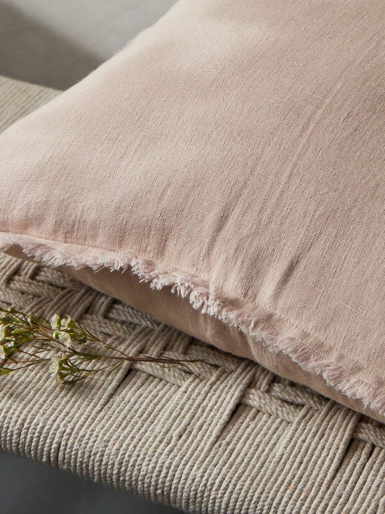 Fringe Linen Cushion Cover Blush Pink