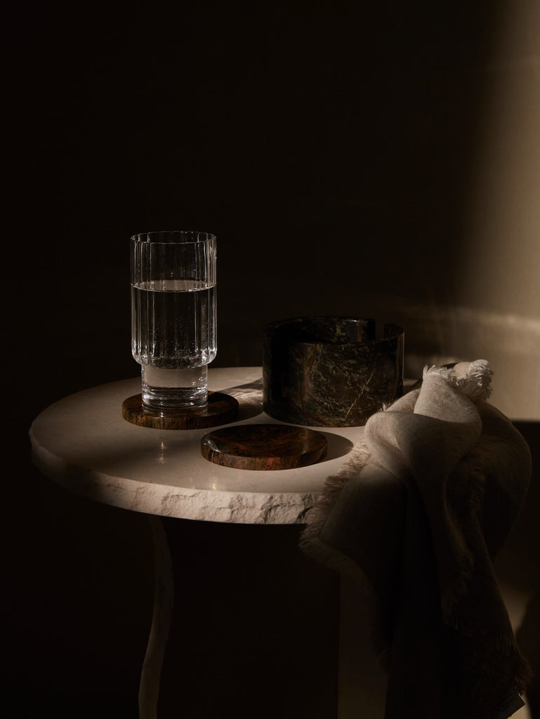 A stylish set of four green coasters to grace your cocktail table. The four coasters are set in their own holder with openings either side for easy access. Compliment with the green holder and marble lazy Susan.