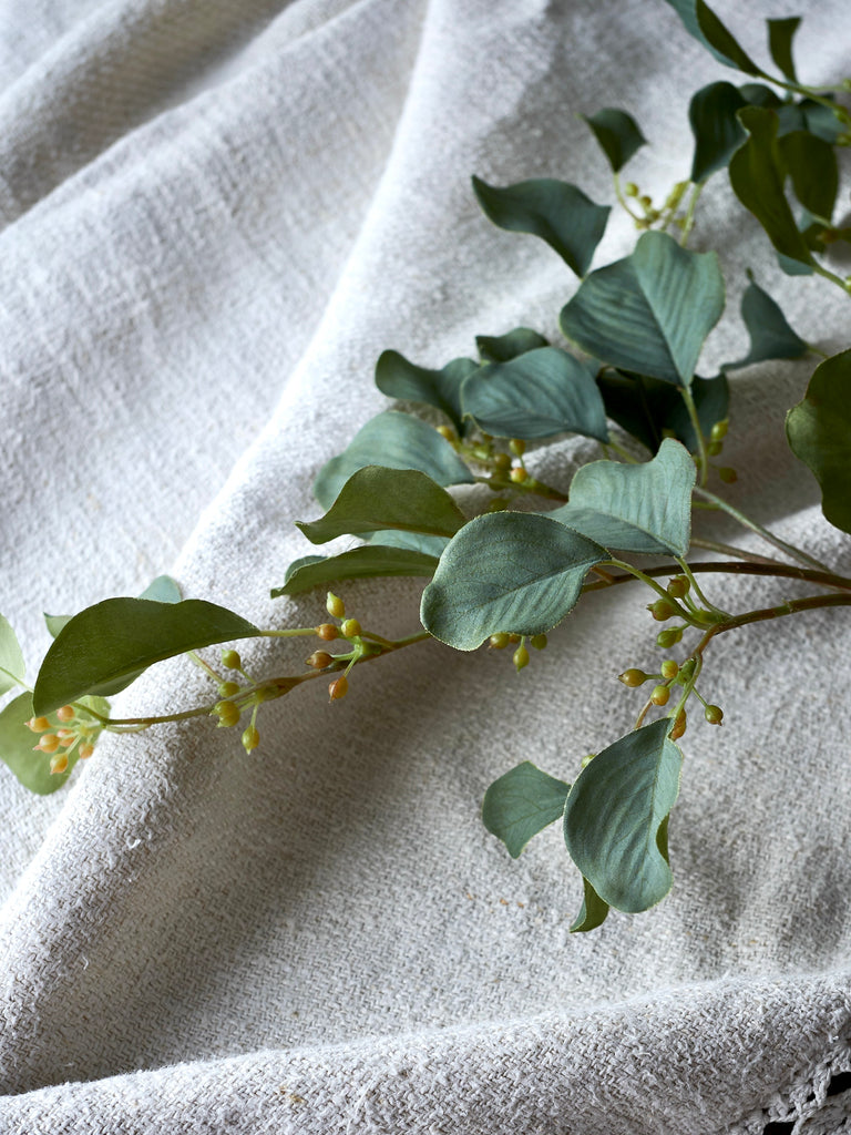 A soft looking foliage stem, this faux eucalyptus & seed spray is an elegant piece with which to style your home. Combine with some white floral stems for a simple yet elegant look or style a set of three.