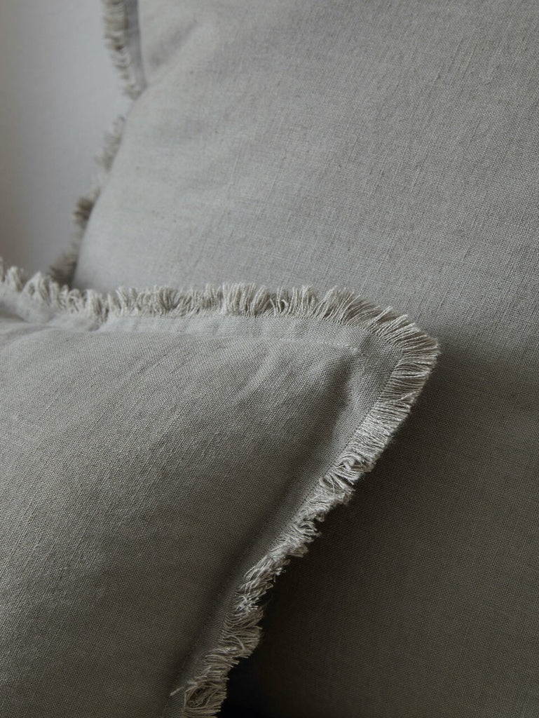 A stunning addition to our linen cushion range, this khaki coloured version has a wonderfully soft tone providing some lovely colour to your sofa or bed. Finished with a fringed edge for an informal look.