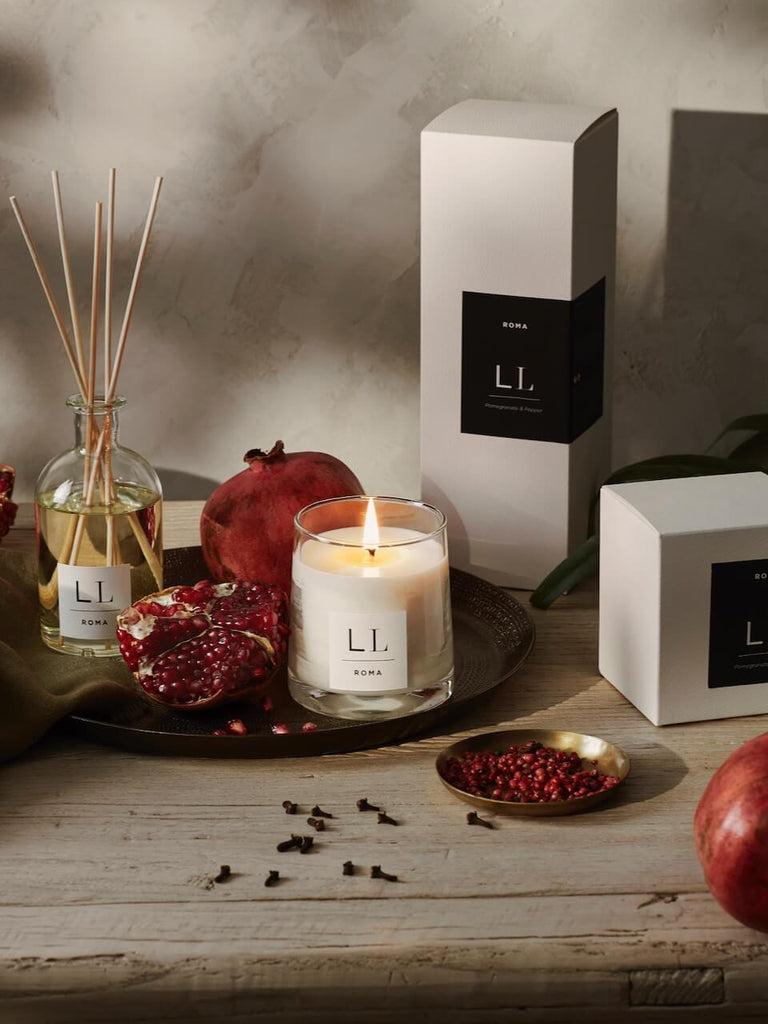If you like a rich floral and citrus scent then the Roma Candle is the one for you. A sophisticated fragrance the Roma candle is an exotic blend of pomegranate and pink peppercorn. With hints of Patchouli for a floral overtone and cedar wood for depth. Full of aromatic elegance, whilst this fragrance has strong floral overtones it is grounded with an earthiness which provides a sense of fresh harmony.