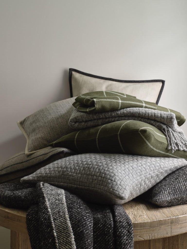 We love the traditional pattern of a herringbone, and this grey wool cushion with herringbone pattern is sure to add a touch of sophisticated elegance to your sofa. Complemented by a contrasting thick edge this is a timeless look perfect for your Autumn/Winter styling.