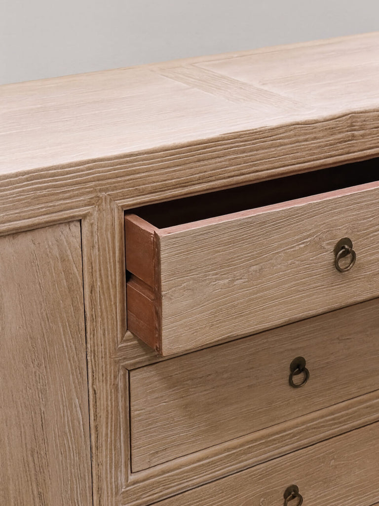 Stylish storage solutions at its best. Our range of reclaimed elm furniture extends with this beautiful new sideboard addition. Once again the texture of the aged wood creates a piece which is full of character yet equally compliments a modern or traditional styled home. The Hambledon sideboard is a large piece with two cupboards complete with inner shelf and three drawers so you can place in your living room, hallway or dining room to store away all your possessions leaving your home in a more clutter free state.