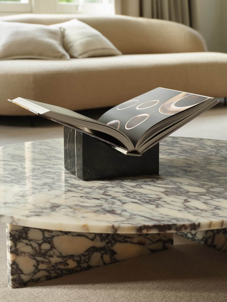 The Elvas marble sculpture is a solid piece made from rich black marble. With a v-shape it's the perfect piece to display your favourite coffee table book, alternatively place simply on a shelf.