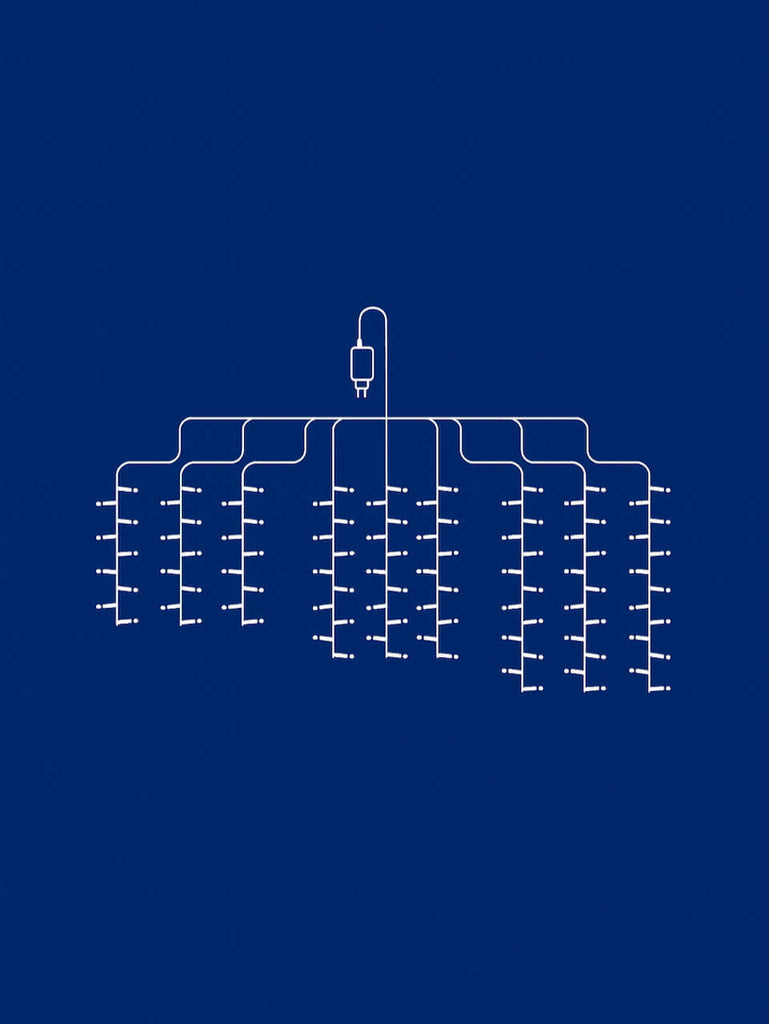 A beautiful set of cascading lights with a delicate finish since these compact lights are more sparse in space than the cluster version but there are more strands for extra coverage. A beautiful way to add a touch of Christmas magic to your outdoor tree.