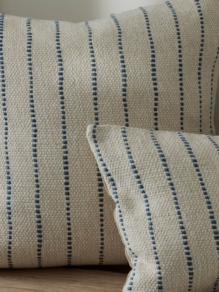 These blue striped cushions are a perfect addition to your sofa for spring/summer styling. Made from cotton with an abundance of texture, the dotted lines will provide a light and airy pop of colour to your existing colour scheme.