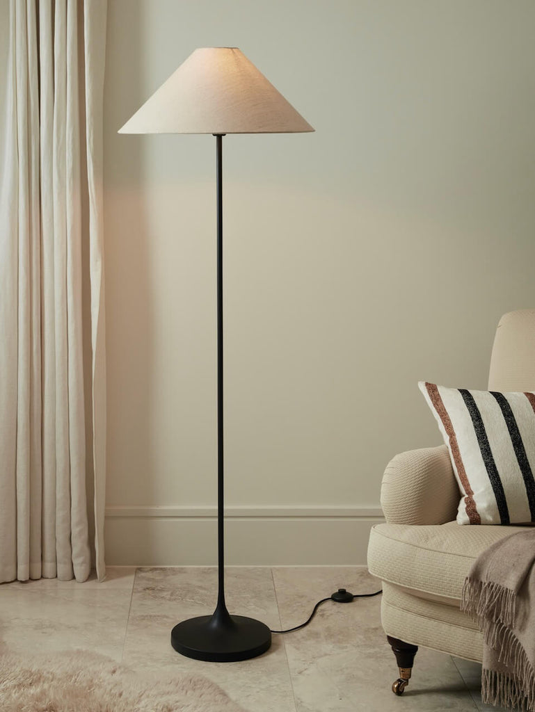 Size: Overall height including shade 166cm. Height of base without shade 149cm. Dia. of base 28cm