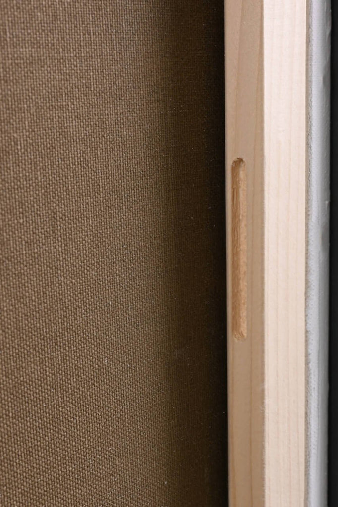 A frameless painting with hanging grooves embedded into the wood enabling you to hang the art both portrait or landscape.