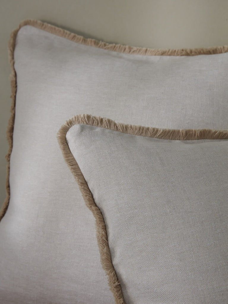 Made from quality European flax linen in Portugal, our Maria Natural Fringe Cushion Cover is an ideal base for layering your sofa. Available in two sizes, this product has a base of soft natural grey with a beige fringe trim. Layer with our Green Check Wool Throw for an additional touch of natural colour.